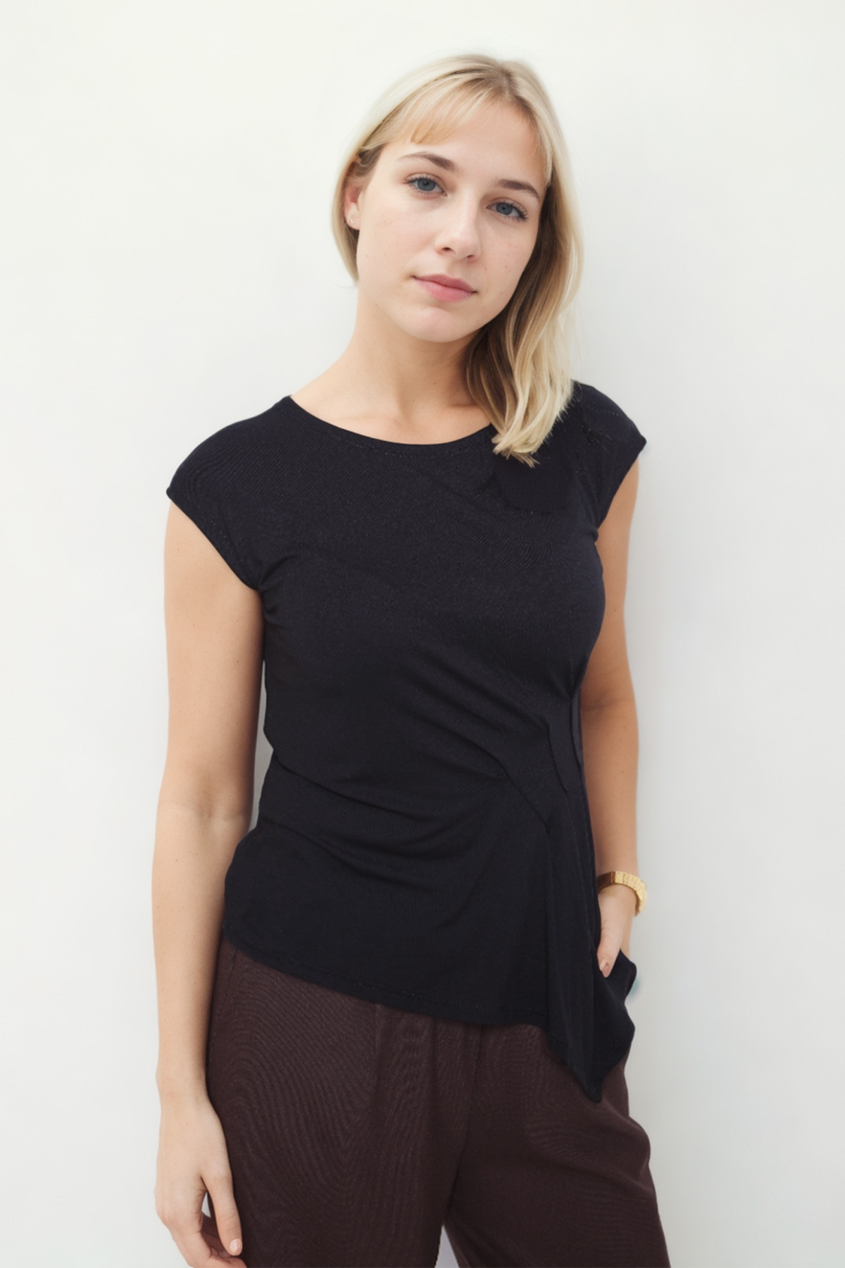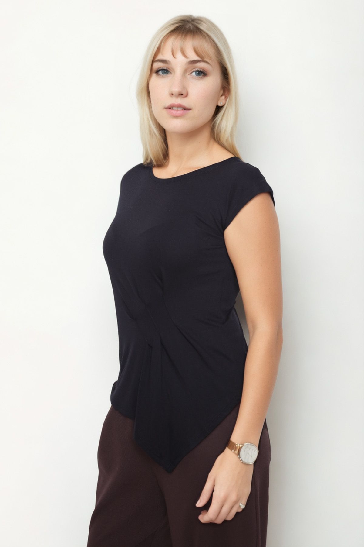Önü Büzgü Detaylı Kısa Kol Bluz