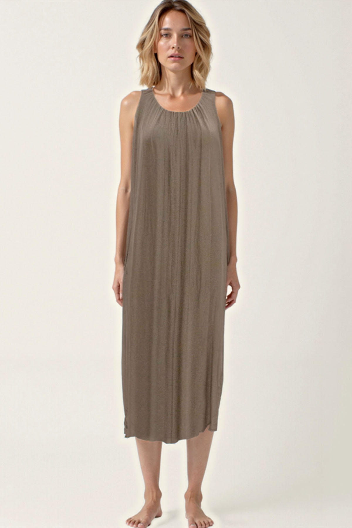 Önü Büzgülü Uzun Tül Elbise
