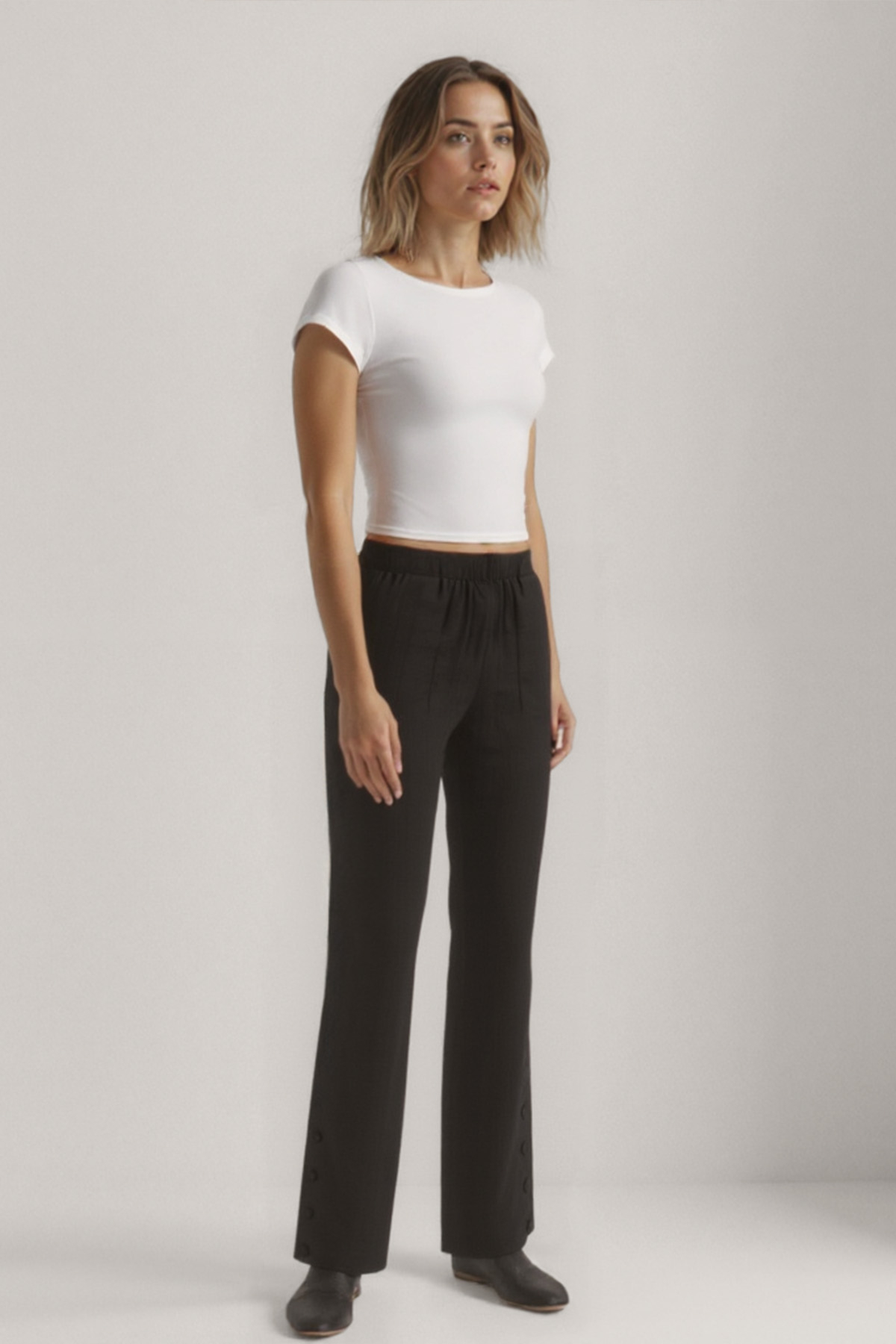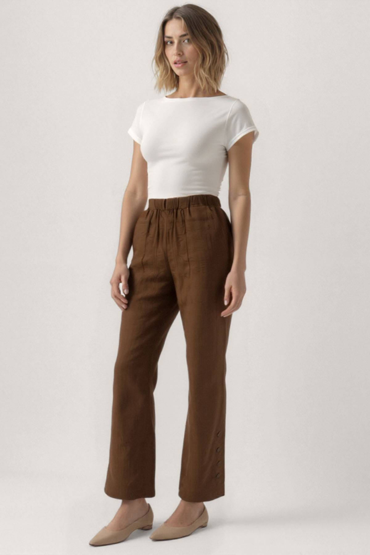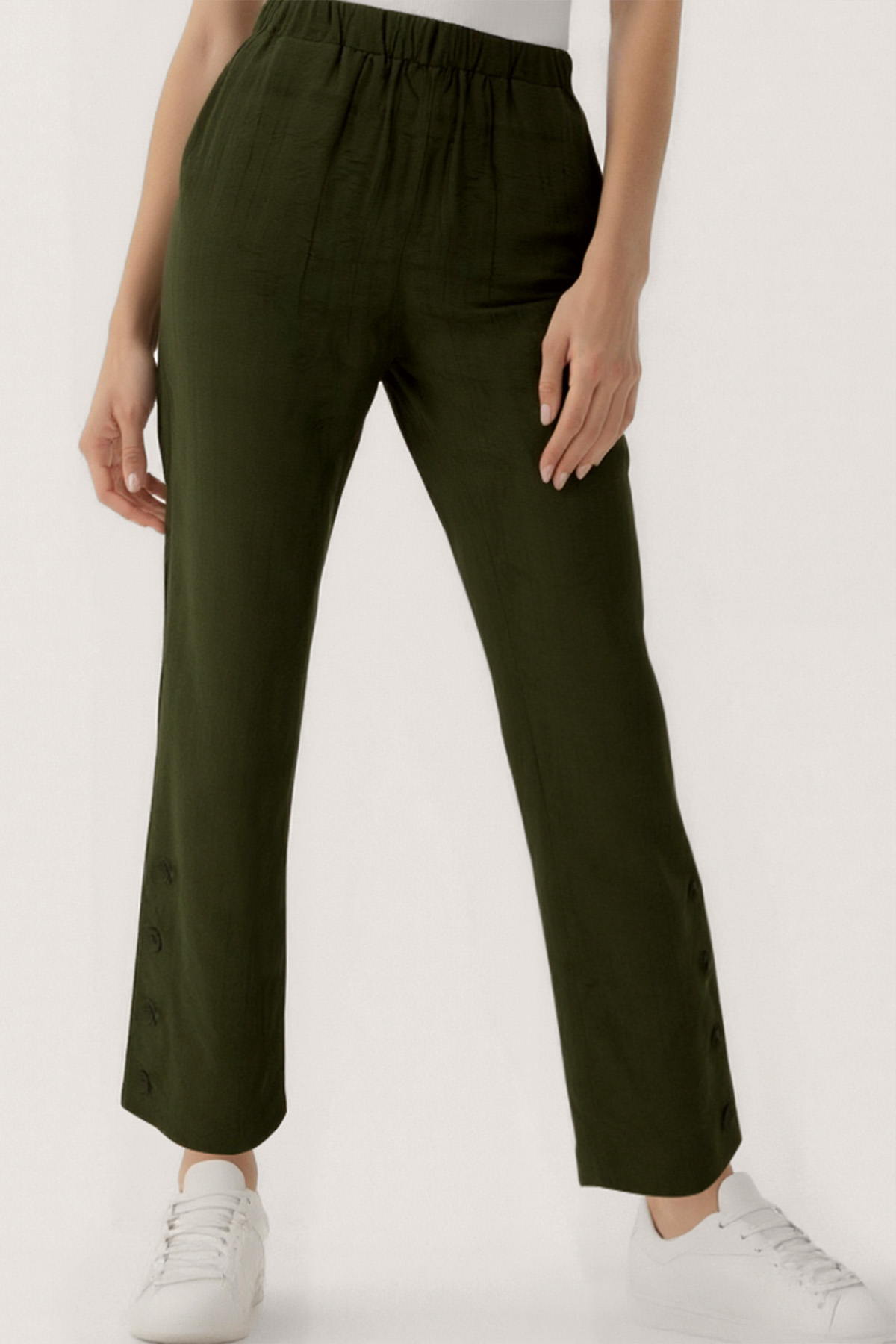 Paçası Düğmeli Krinkıl Kumaş Pantolon