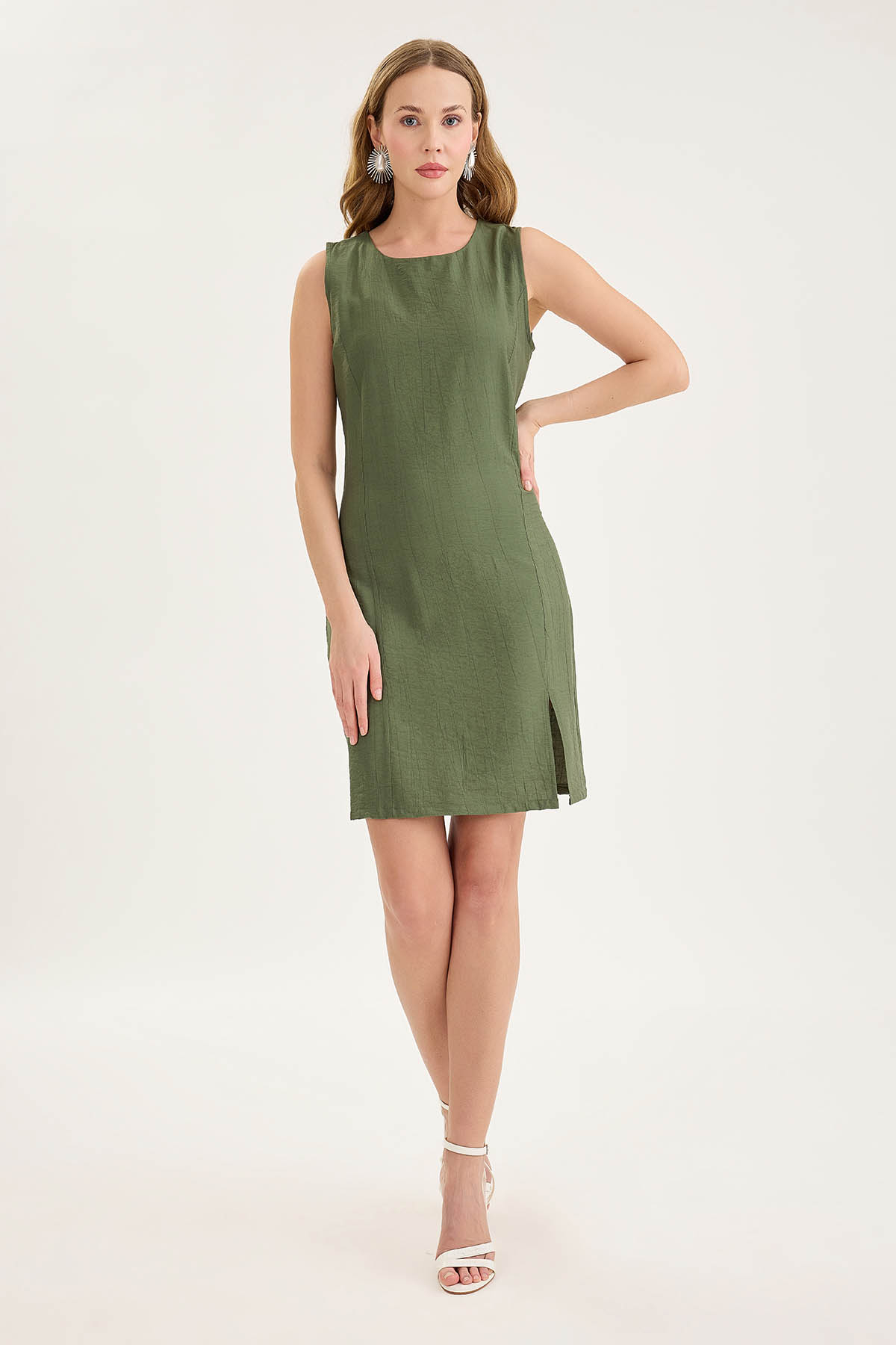 Sıfır Kol Önü Yırtmaçlı Elbise