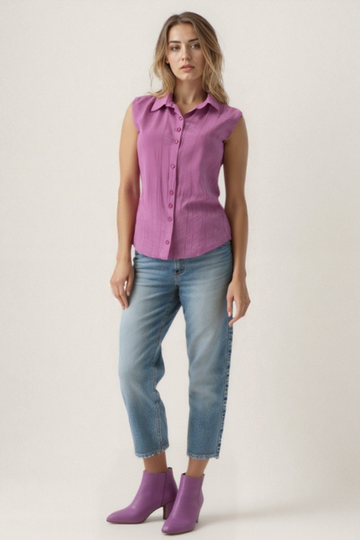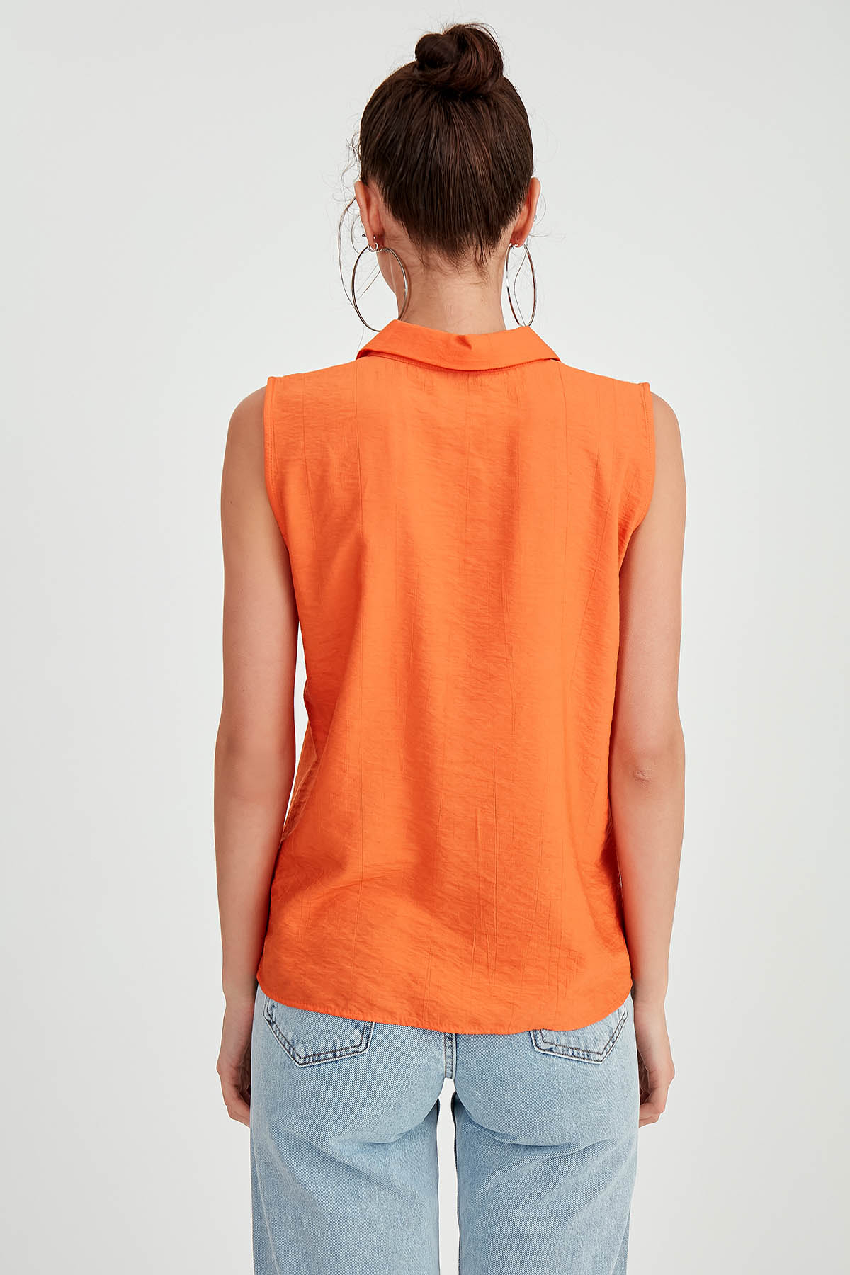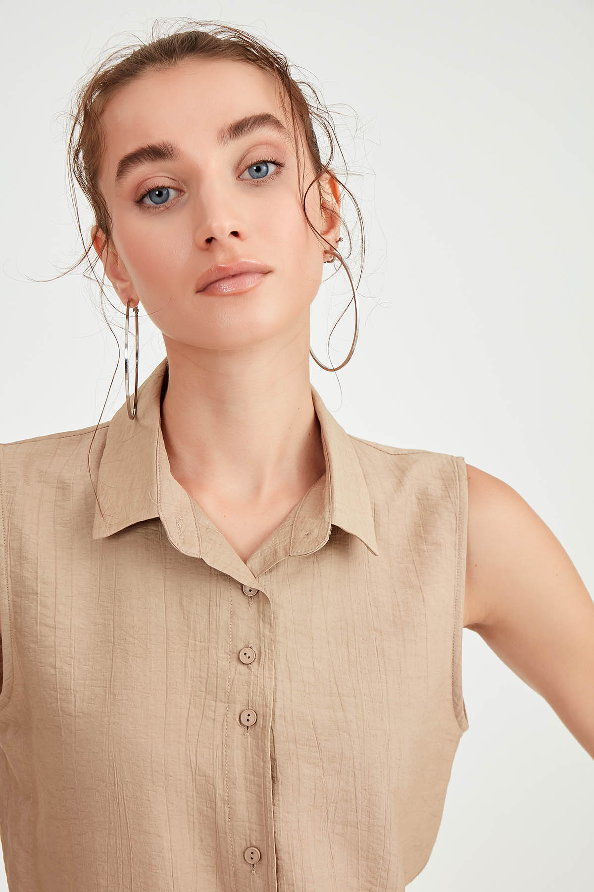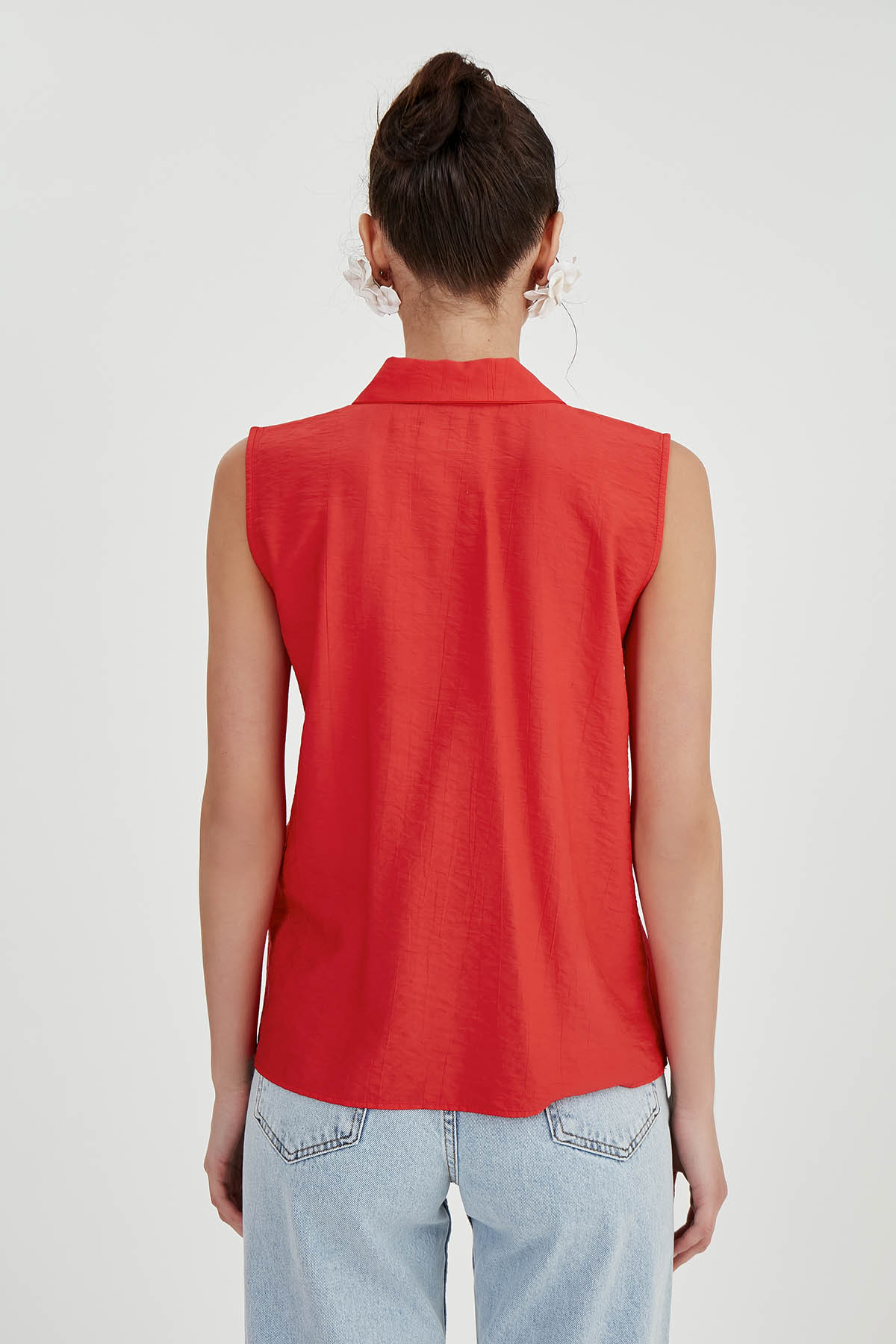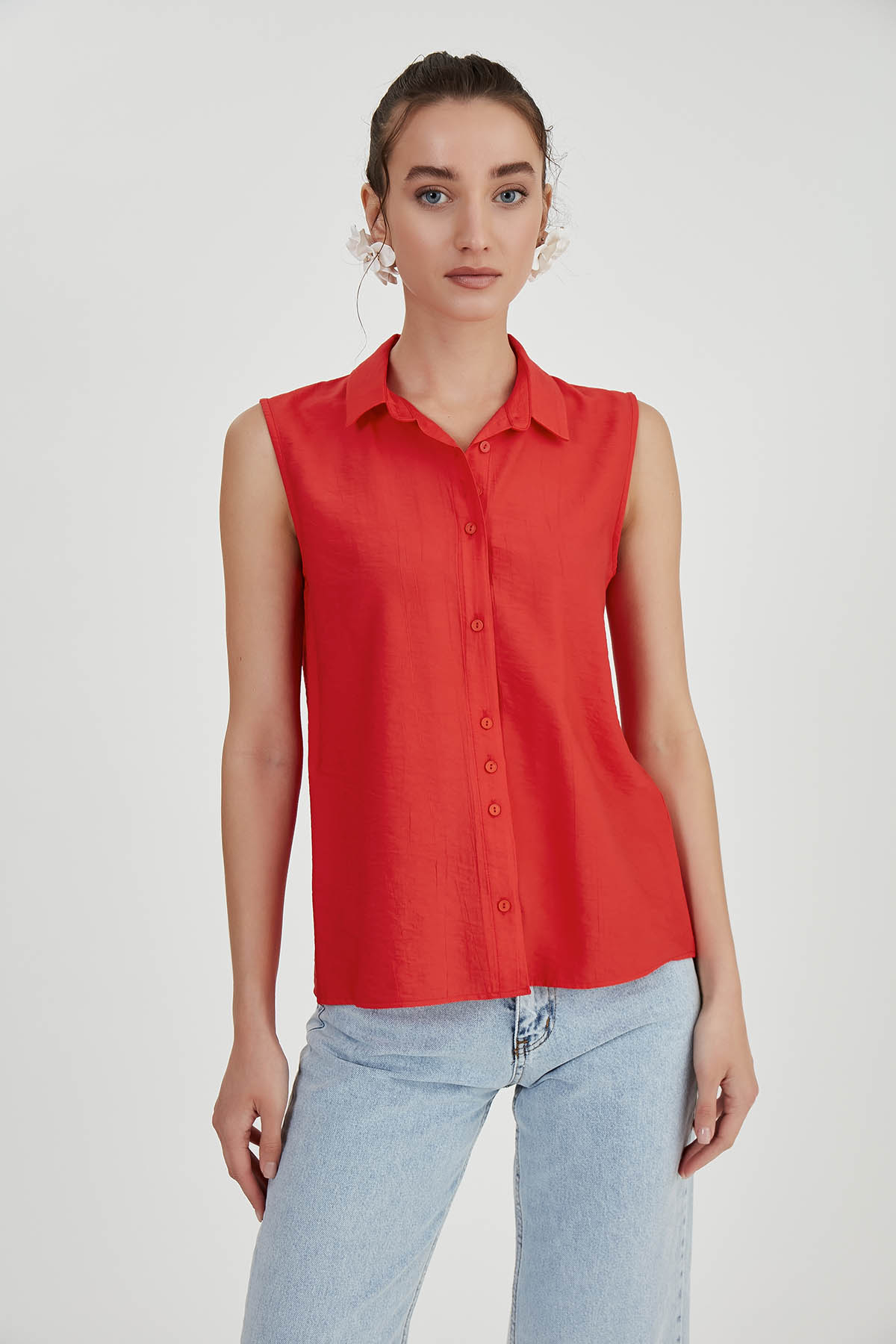 Sıfır Kol Yakalı Önden Düğmeli Bluz