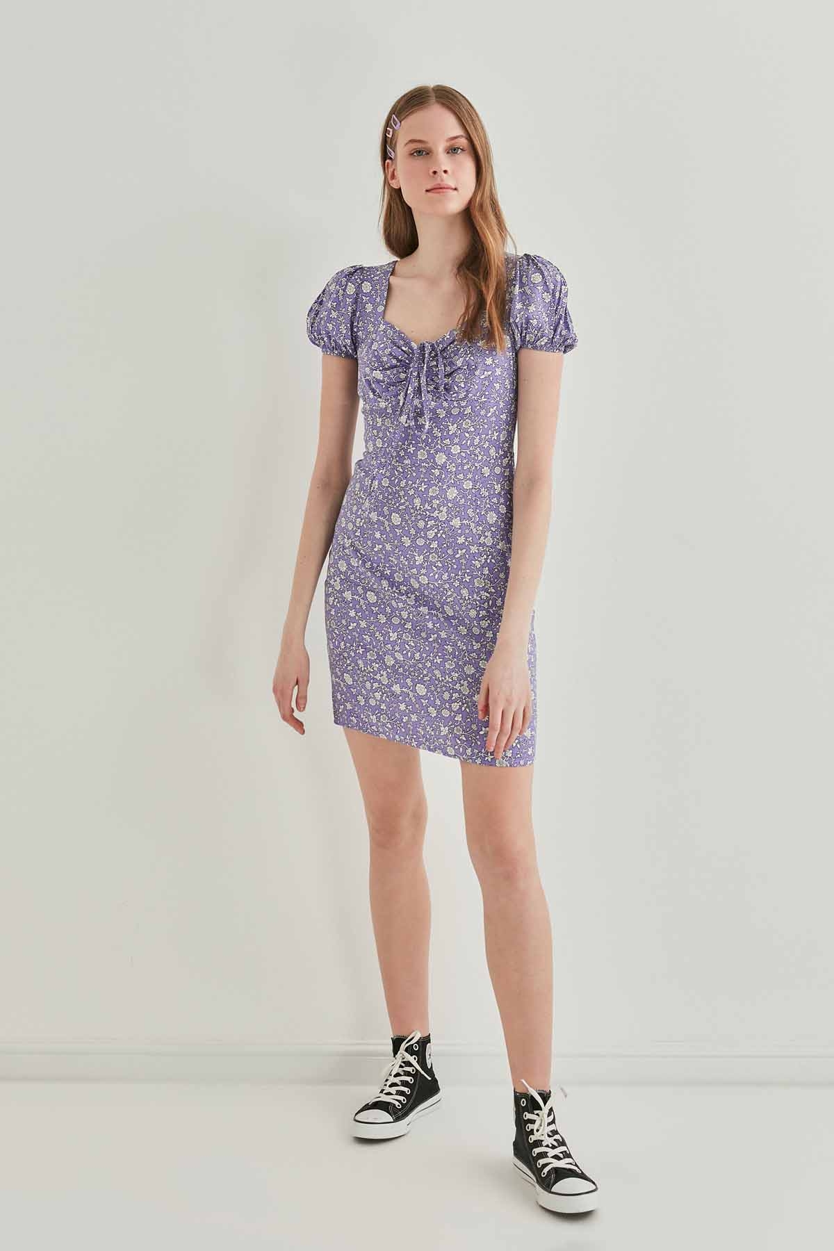 Yaka Bağcık Detaylı Minik Kol Elbise