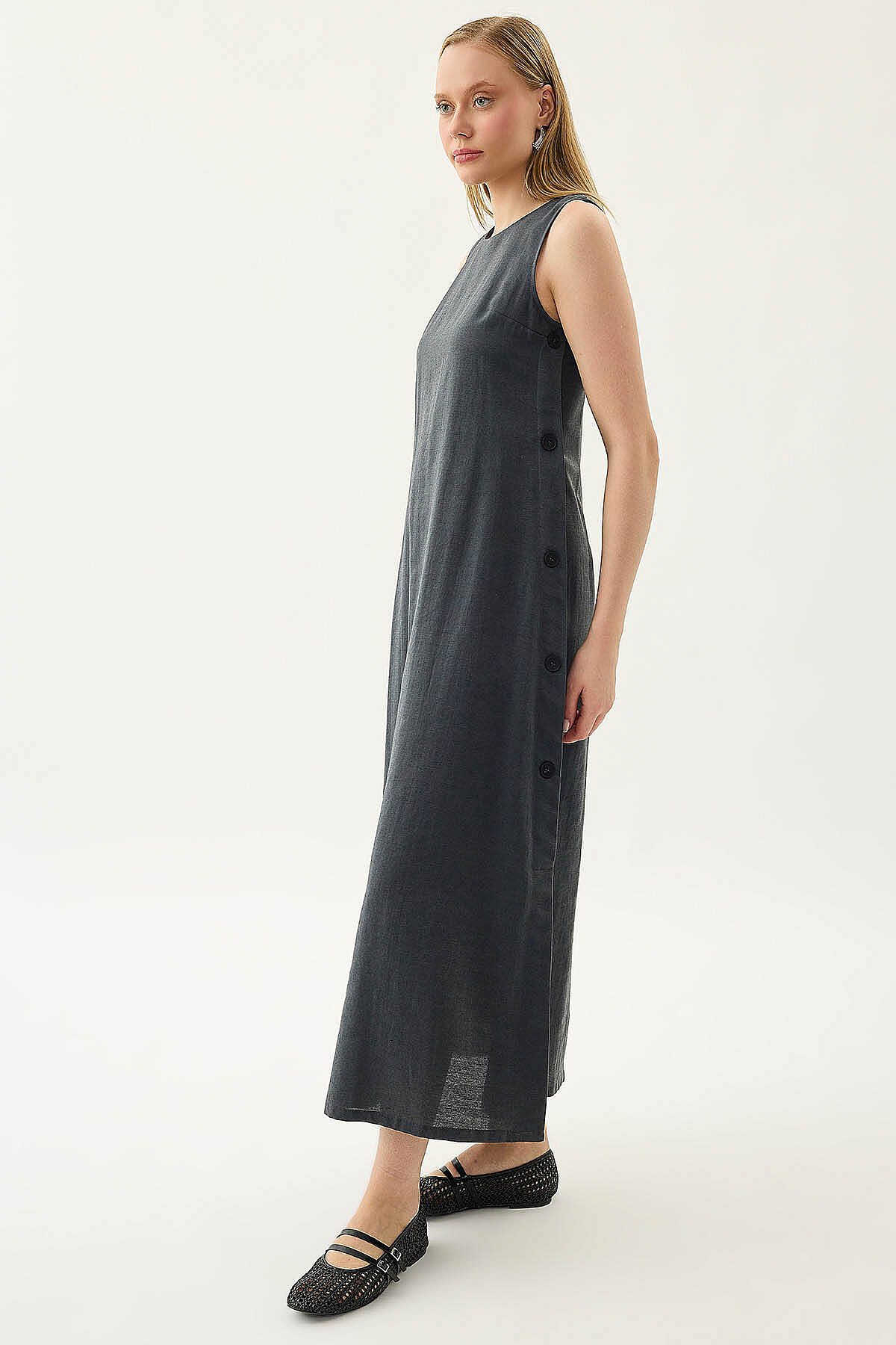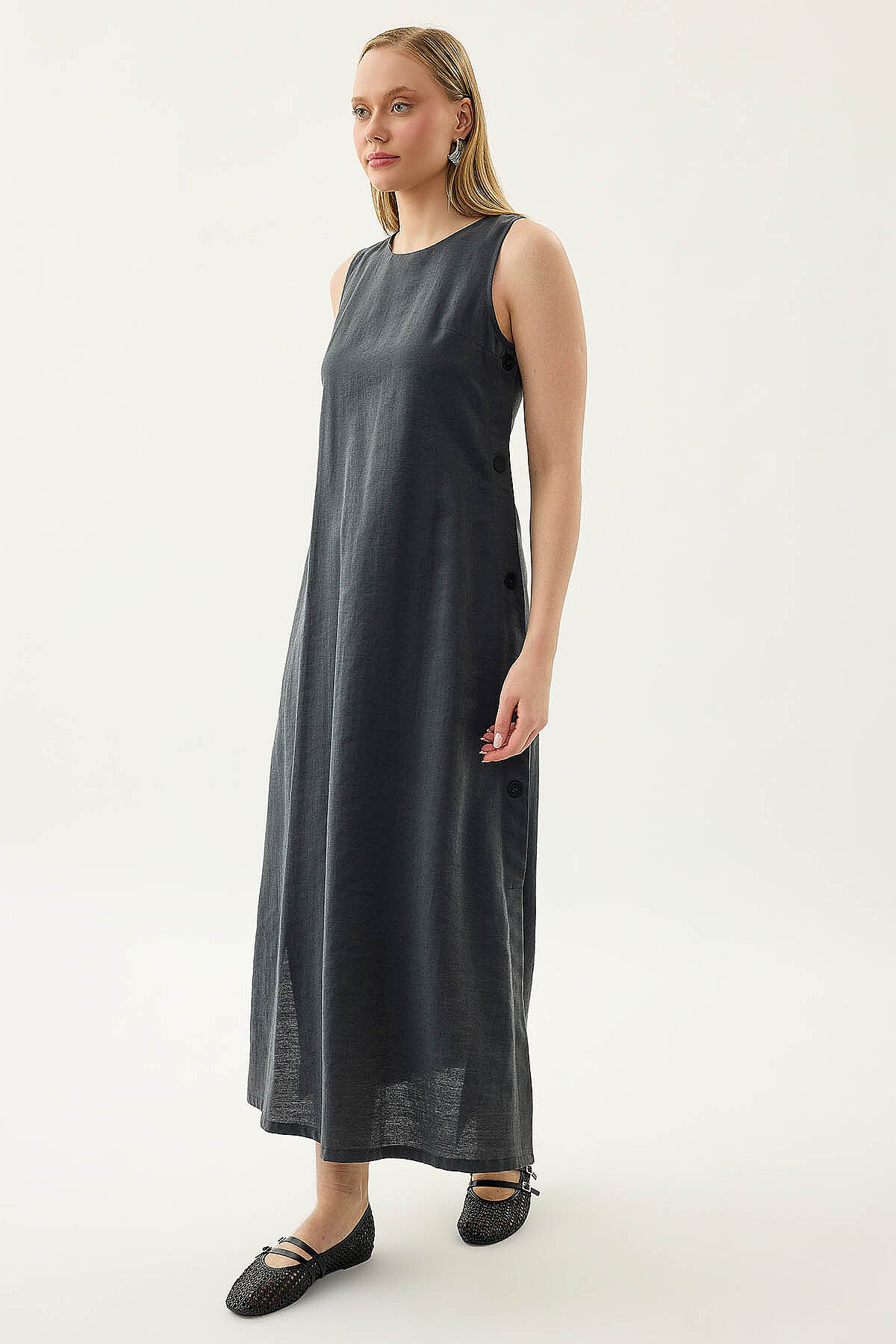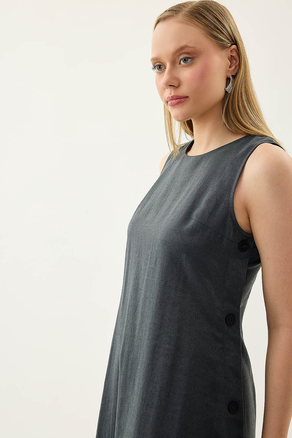 Yanları Düğmeli Sıfır Kol Elbise Siyah