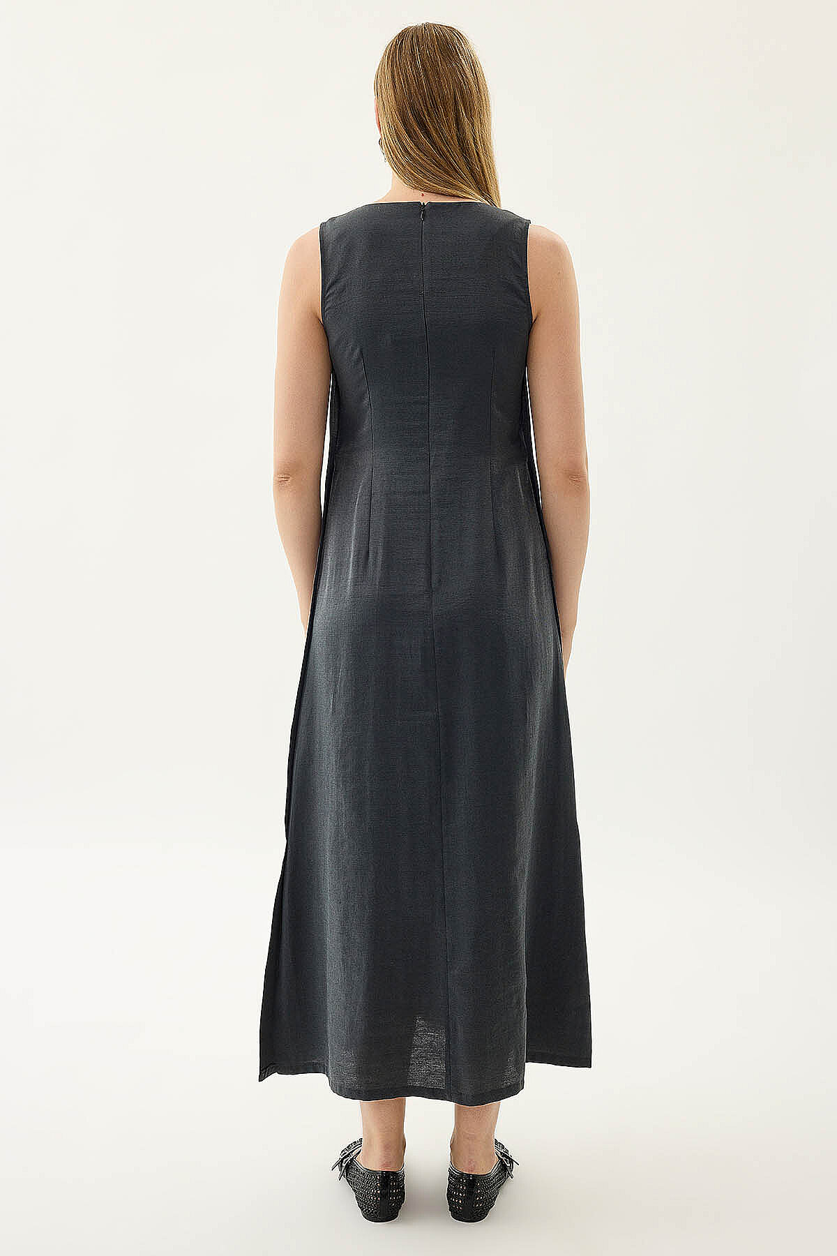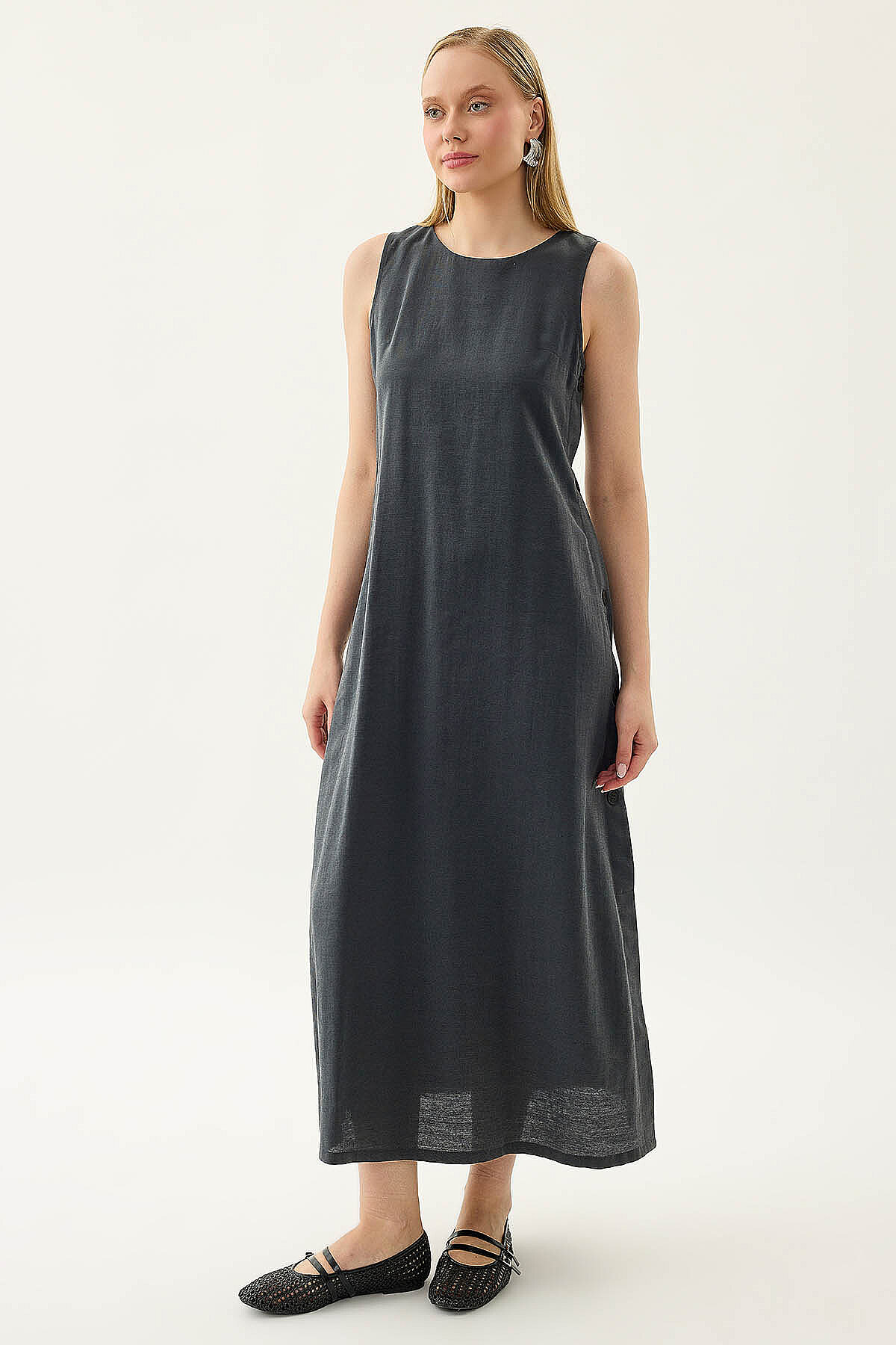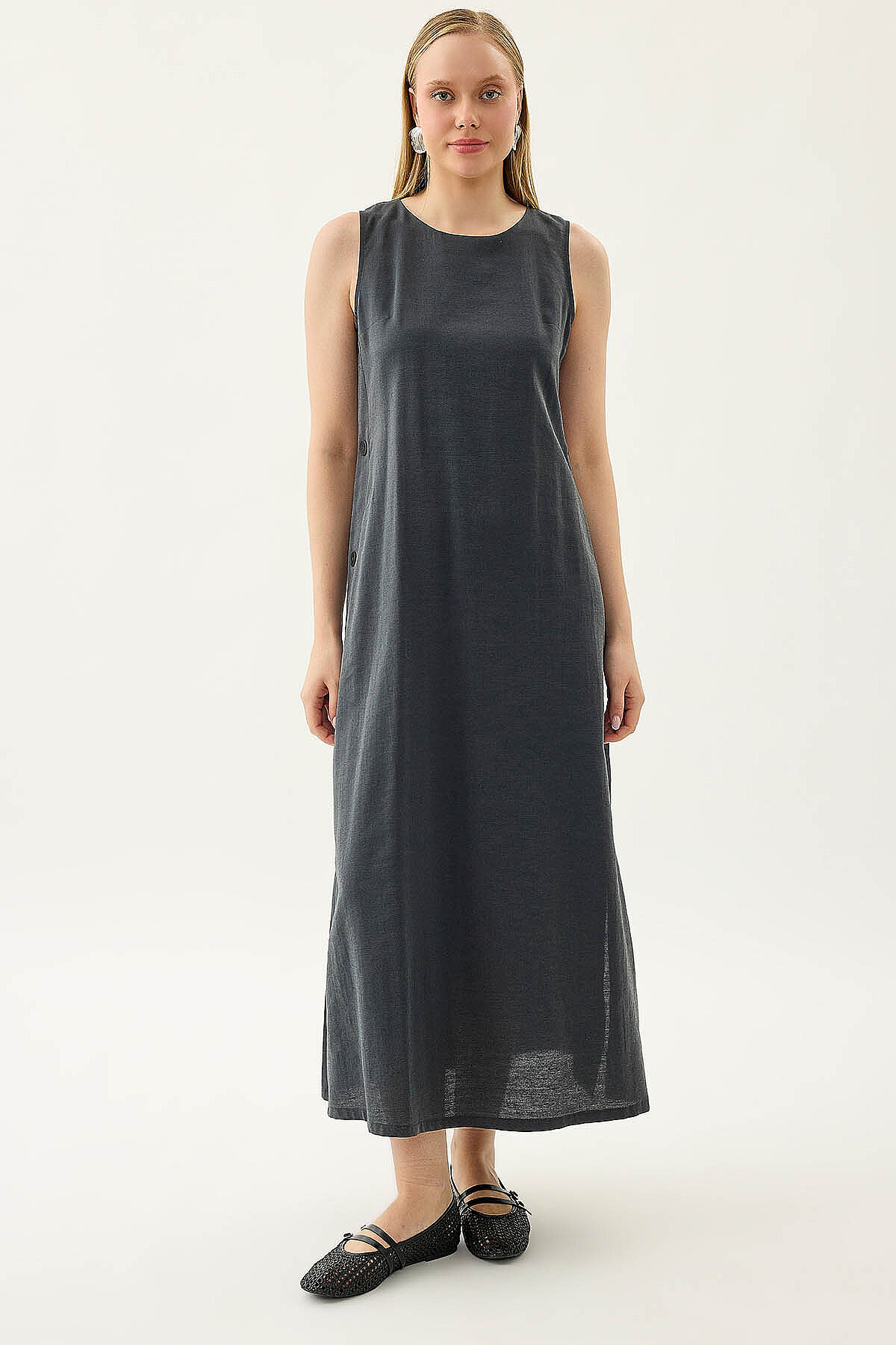 Yanları Düğmeli Sıfır Kol Elbise Siyah