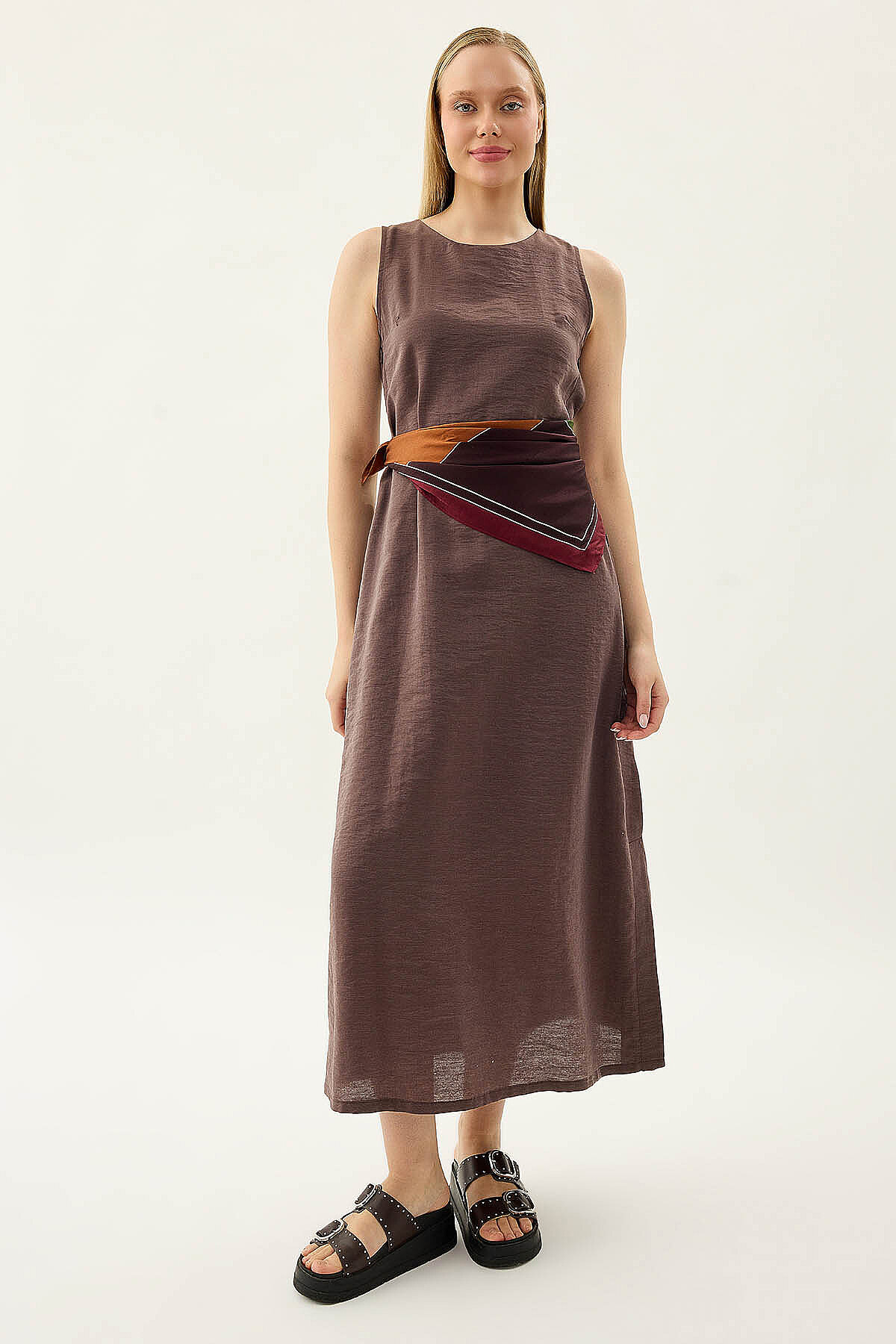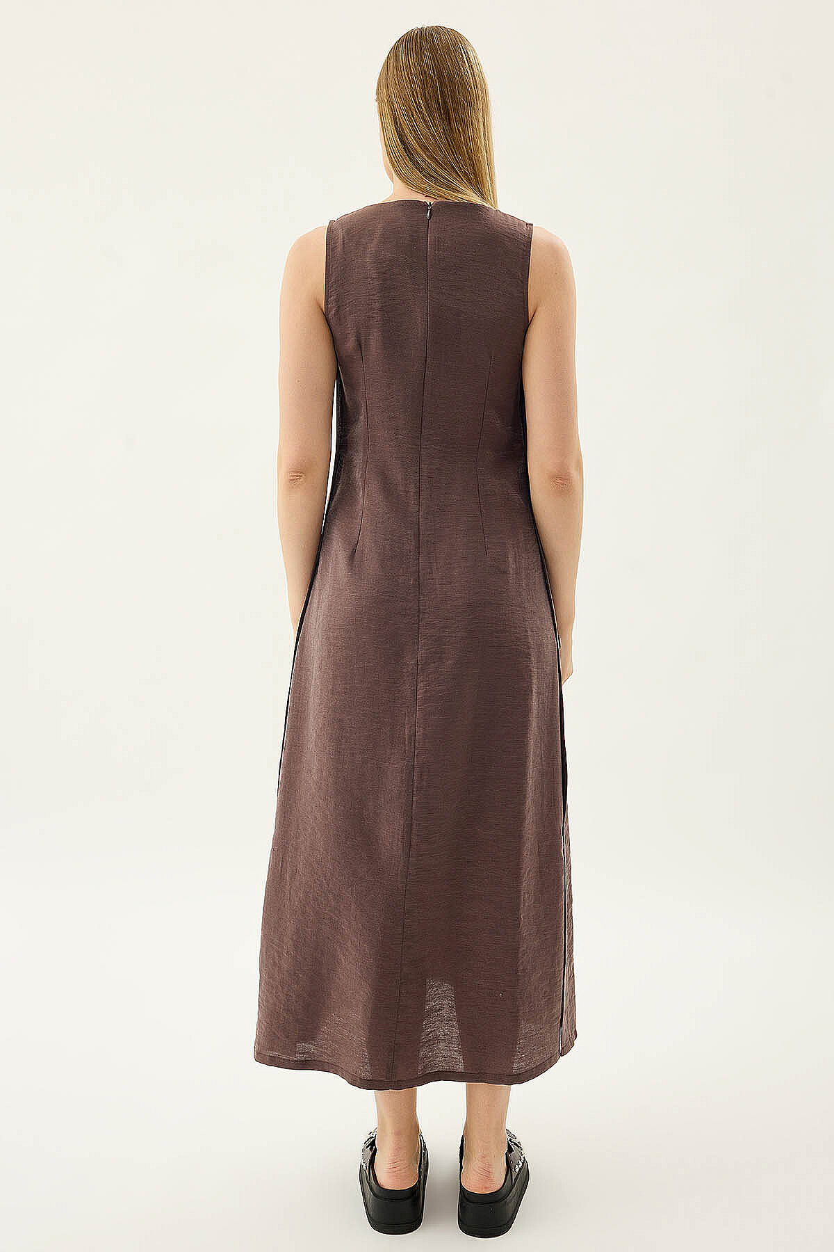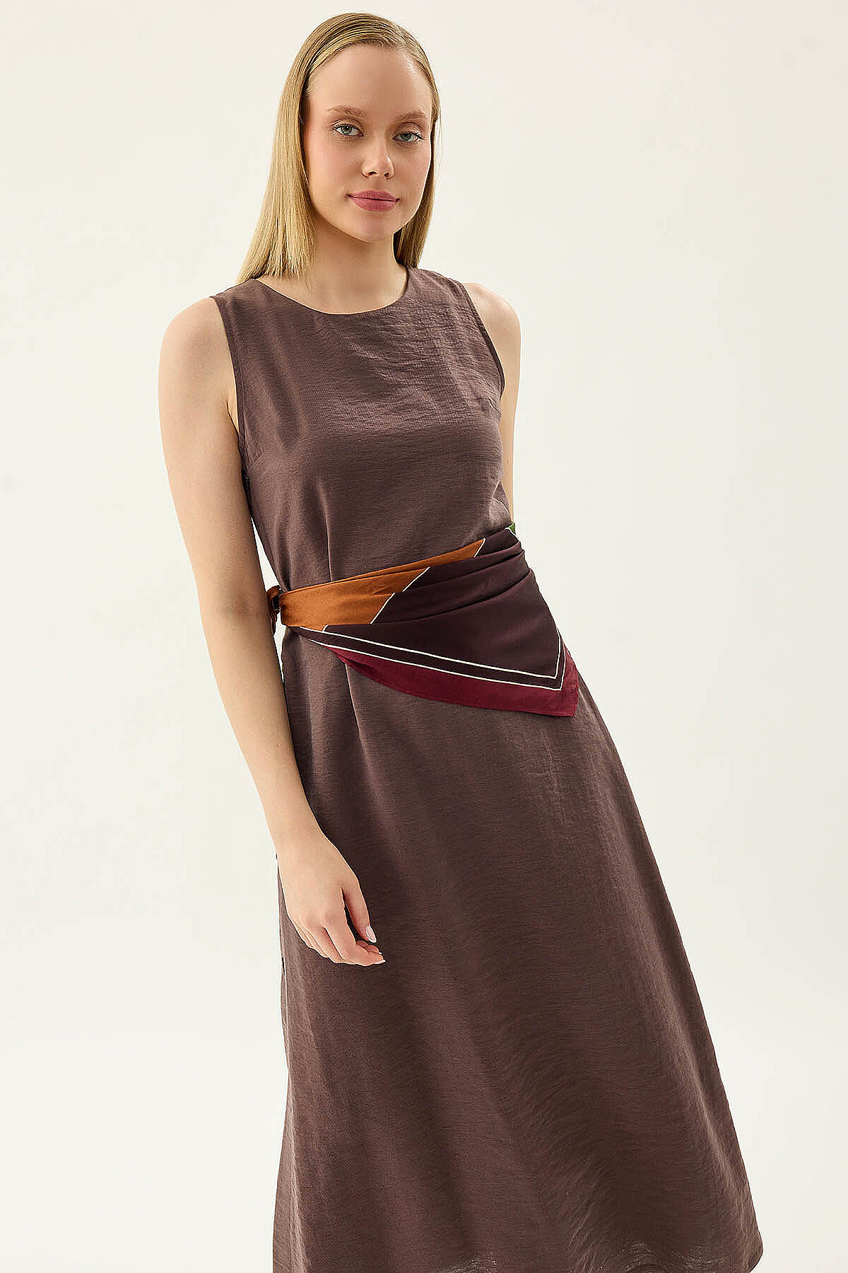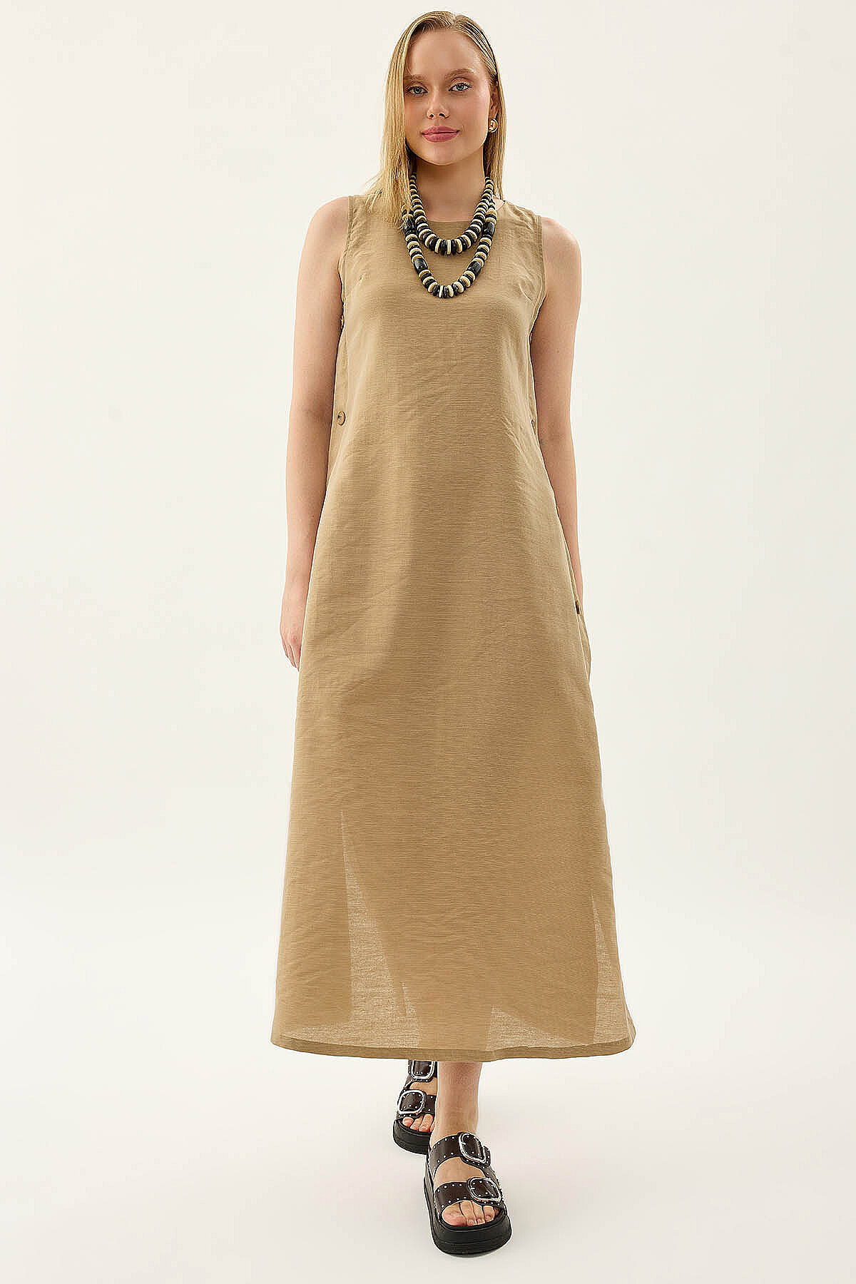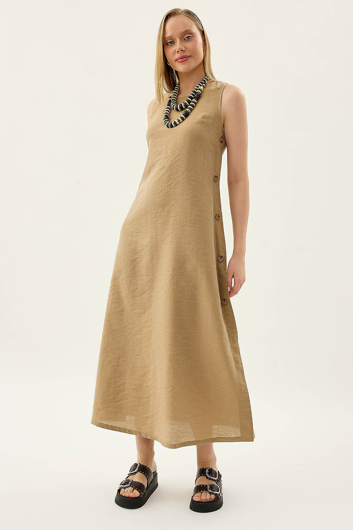 Yanları Düğmeli Sıfır Kol Elbise Kahve