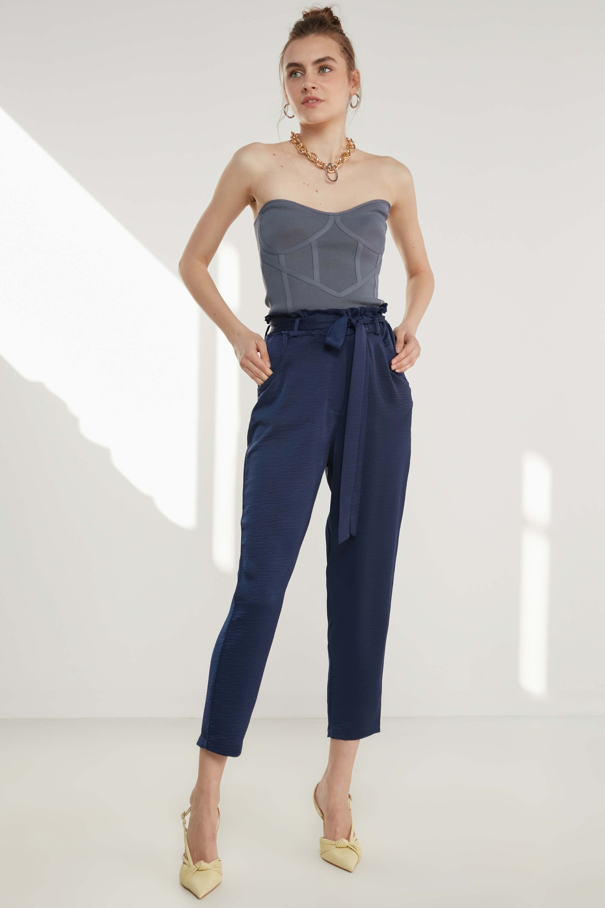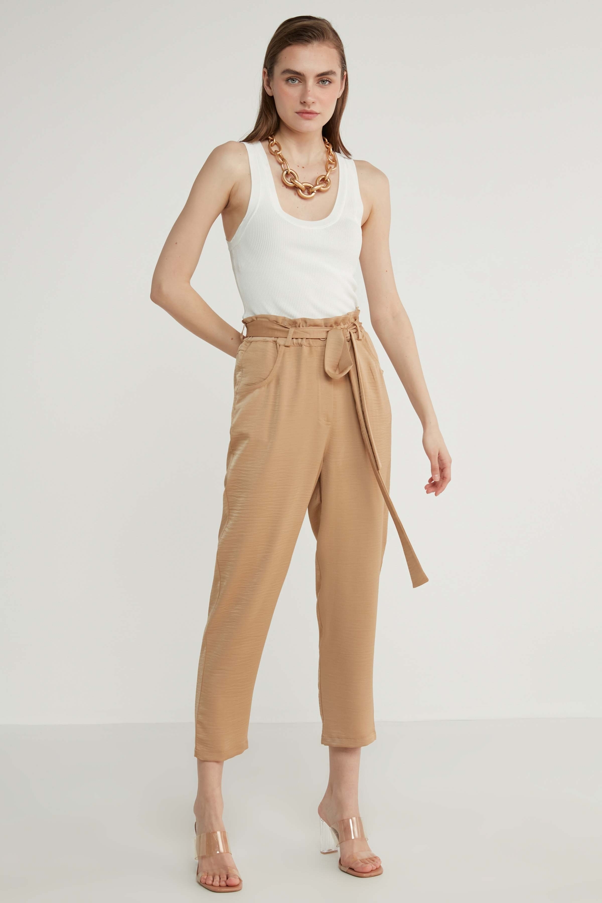 Yüksek Bel Beli Büzgülü Havuç Pantolon