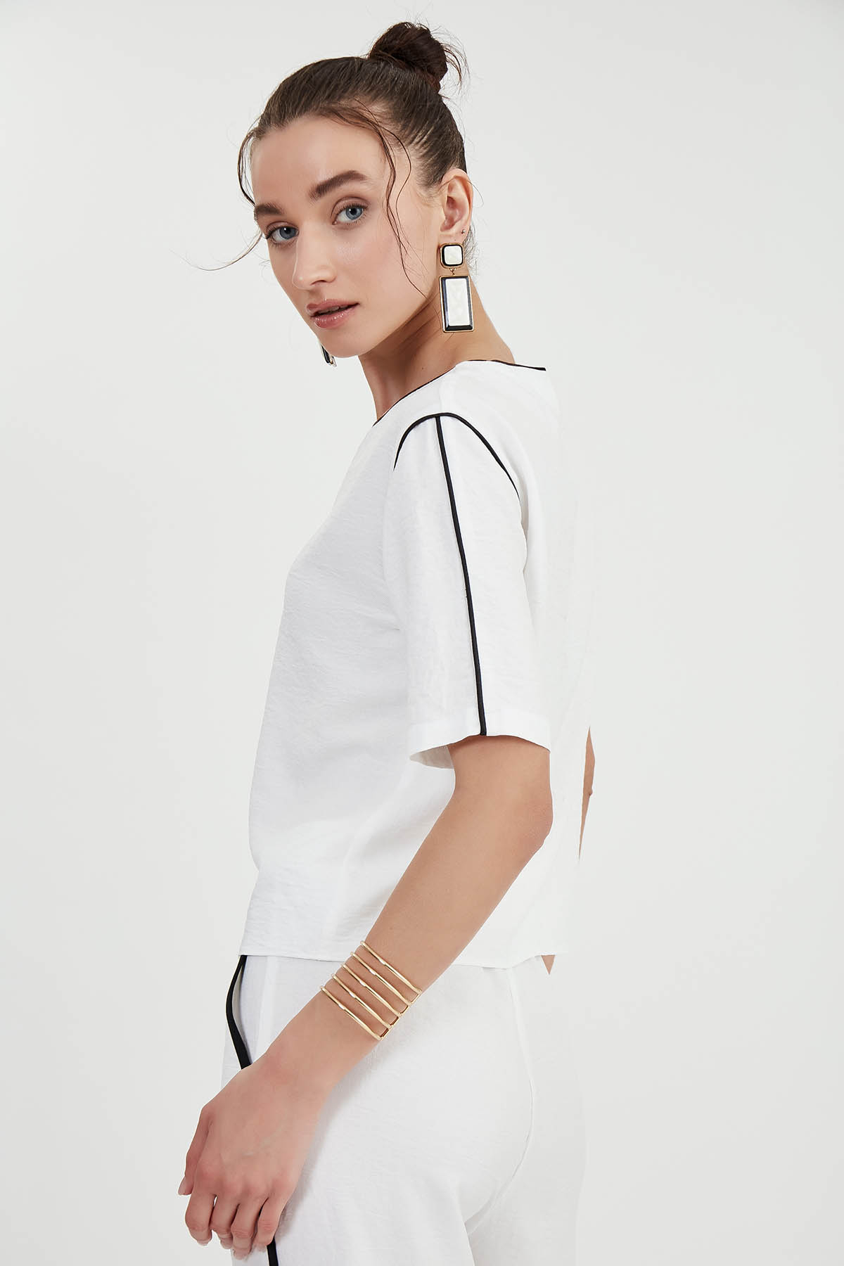 Yuvarlak Yaka Şerit Detaylı Bluz